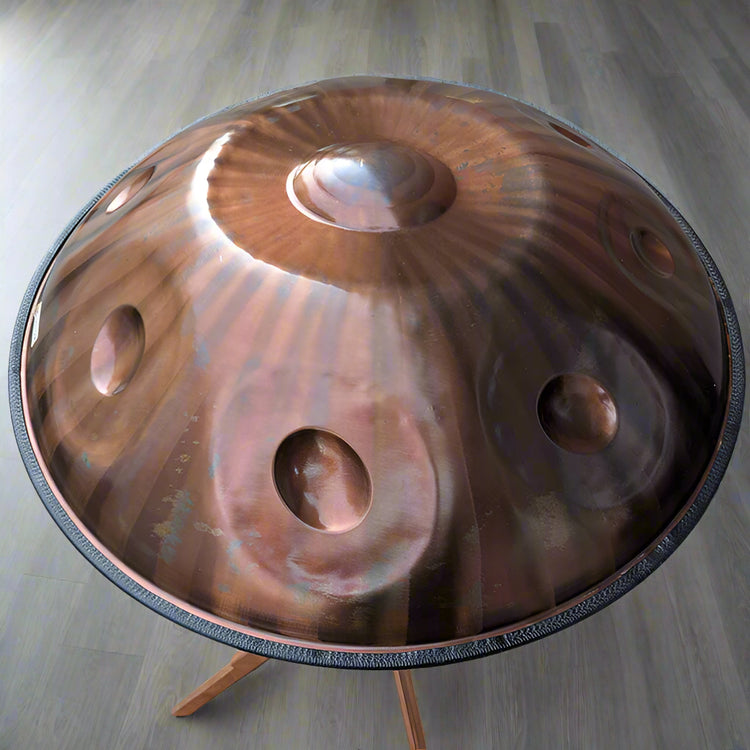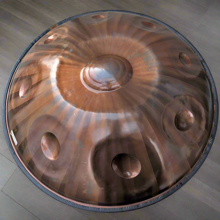 Unsere Handpans werden in aufwendiger Handarbeit gefertigt. Auch wenn unsere Handpans in größter Sorgfalt und mit höchster Handwerkskunst gefertigt werden, können natürliche Unterschiede in der Farbe, leichte Variationen im Design sowie minimale Fertigungsspuren, wie feine Kratzer oder Unebenheiten auf den Tonfeldern und dem Klangkörper, auftreten.