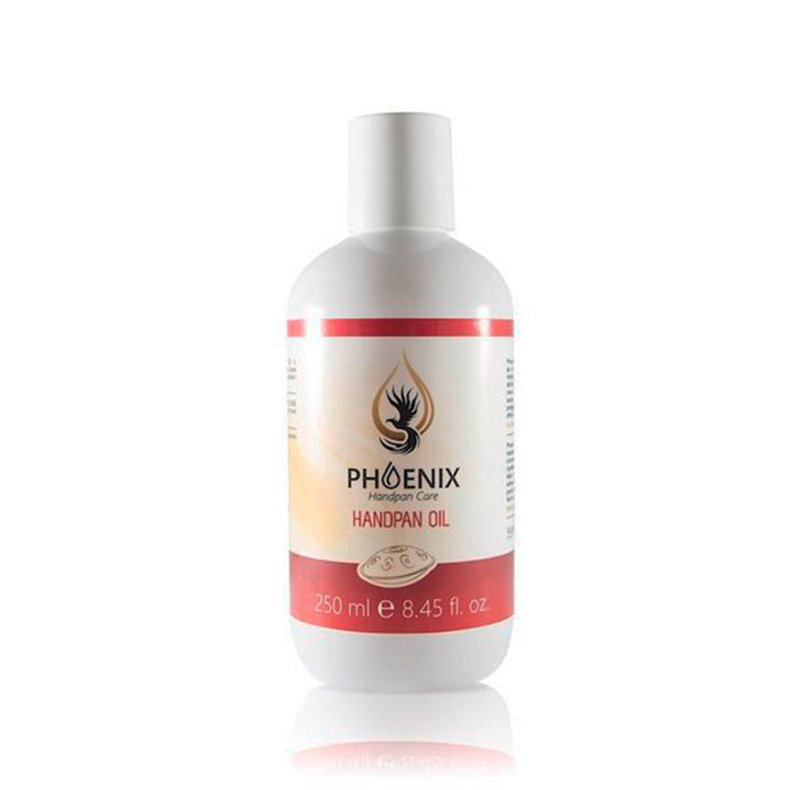 Eine Flasche mit 250 ml Phoenix Handpan Pflege Öl, zur Reinigung und Plfege von Handpan Drum Instrument.
