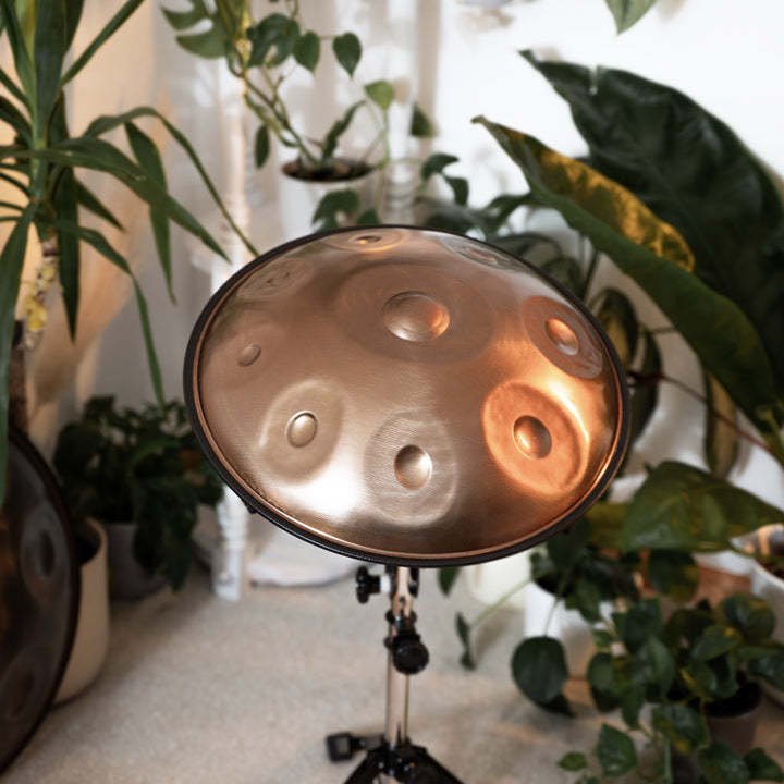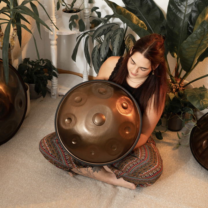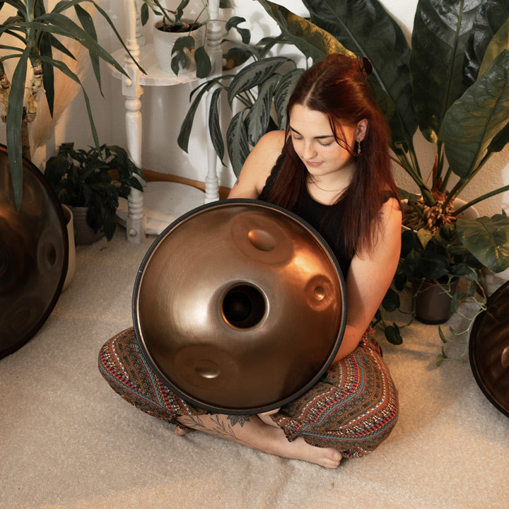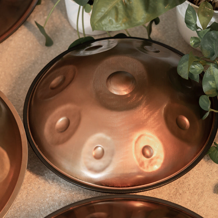 Our handpans are elaborately crafted by hand. Even though our handpans are made with the utmost care and craftsmanship, natural differences in color, slight variations in design and minimal manufacturing marks, such as fine scratches or unevenness on the tone fields and the sound body, may occur.