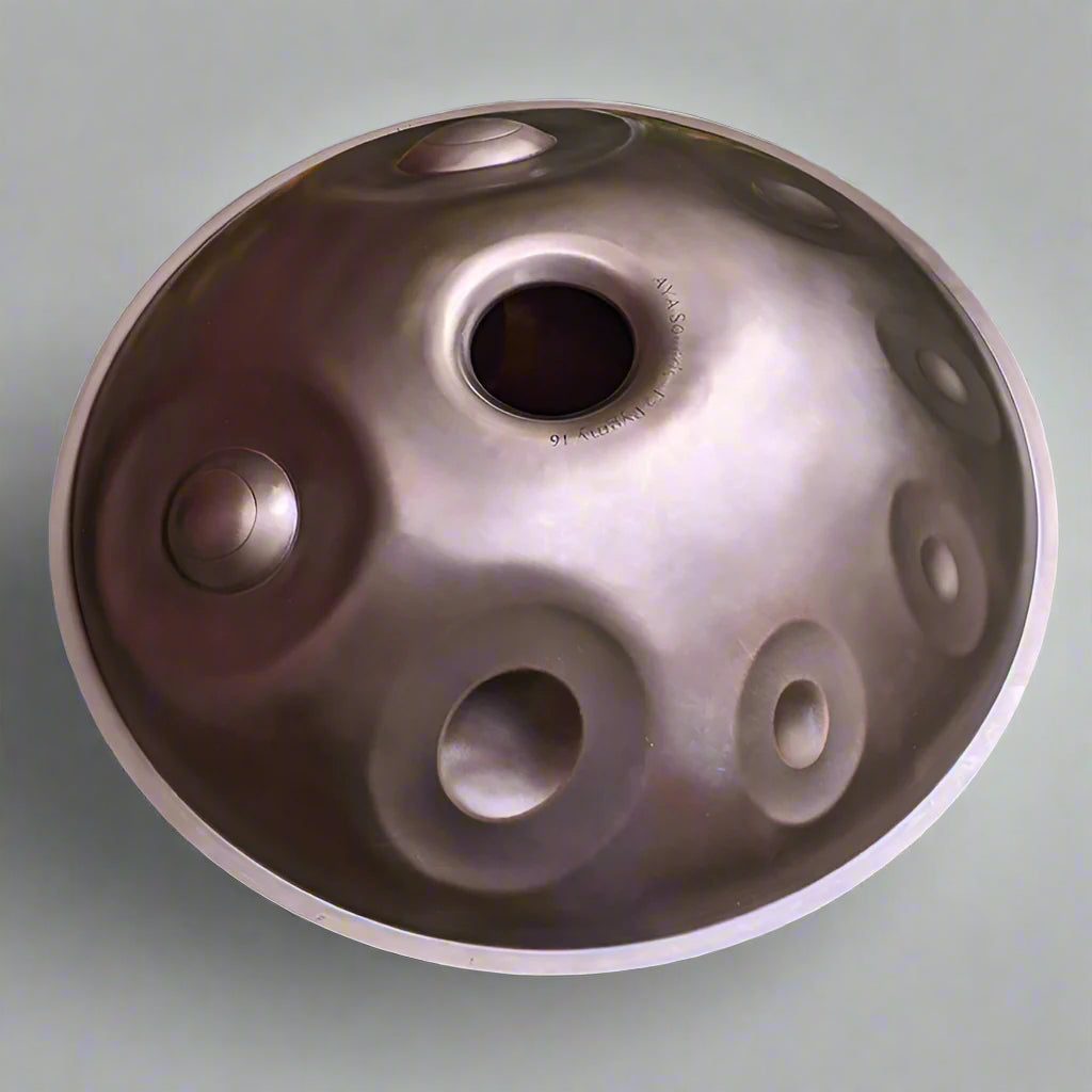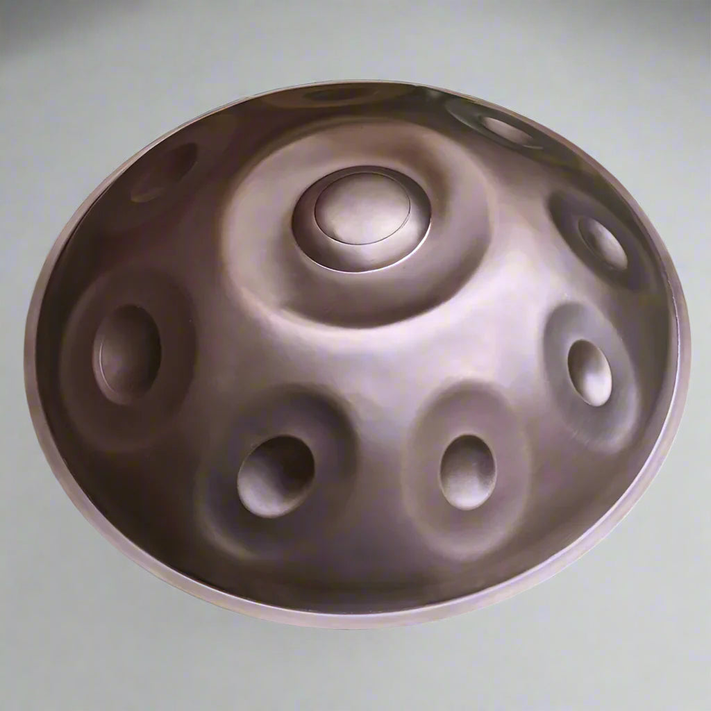 Our handpans are elaborately crafted by hand. Even though our handpans are made with the utmost care and craftsmanship, natural differences in color, slight variations in design and minimal manufacturing marks, such as fine scratches or unevenness on the tone fields and the sound body, may occur.