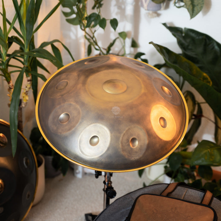 Our handpans are elaborately crafted by hand. Even though our handpans are made with the utmost care and craftsmanship, natural differences in color, slight variations in design and minimal manufacturing marks, such as fine scratches or unevenness on the tone fields and the sound body, may occur.