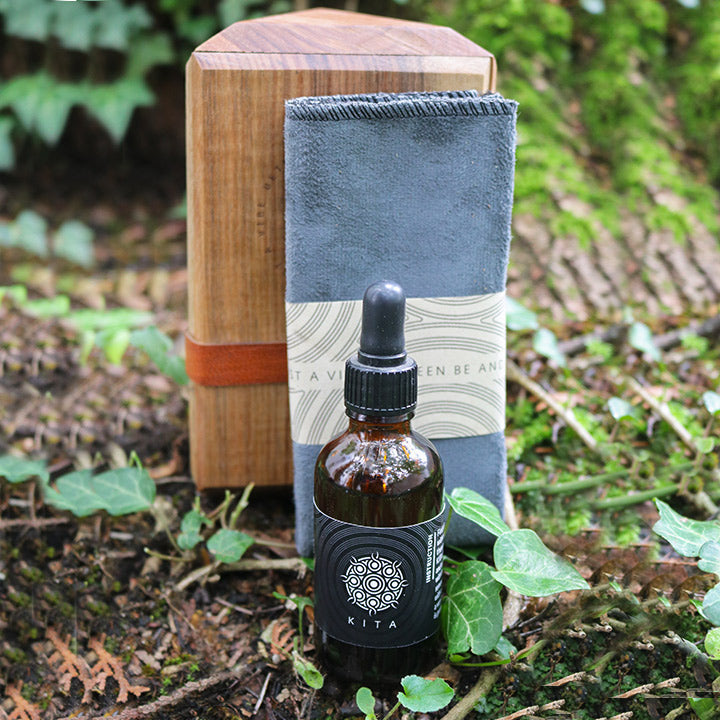 - Après le nettoyage, appliquez suffisamment d'huile d'entretien sur la surface propre et sèche de votre handpan et étalez-la uniformément avec un chiffon en microfibre afin que l'ensemble du handpan soit recouvert d'une couche d'huile brillante.