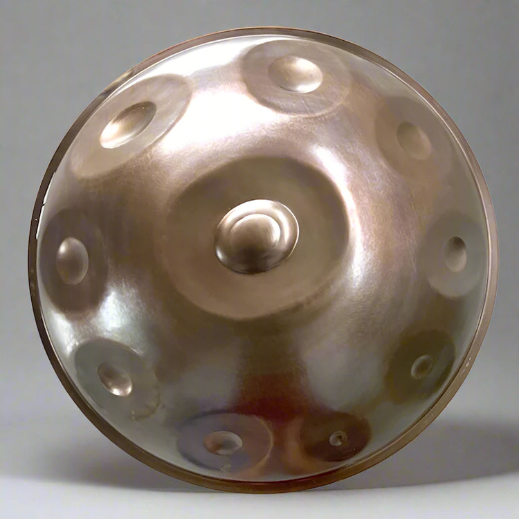 Visible hammer marks, which are caused by the precise tuning of the instrument by hand, are characteristic features of handmade handpans. They are evidence of authentic craftsmanship and do not represent a quality defect. On the contrary, they emphasize the uniqueness of each instrument.